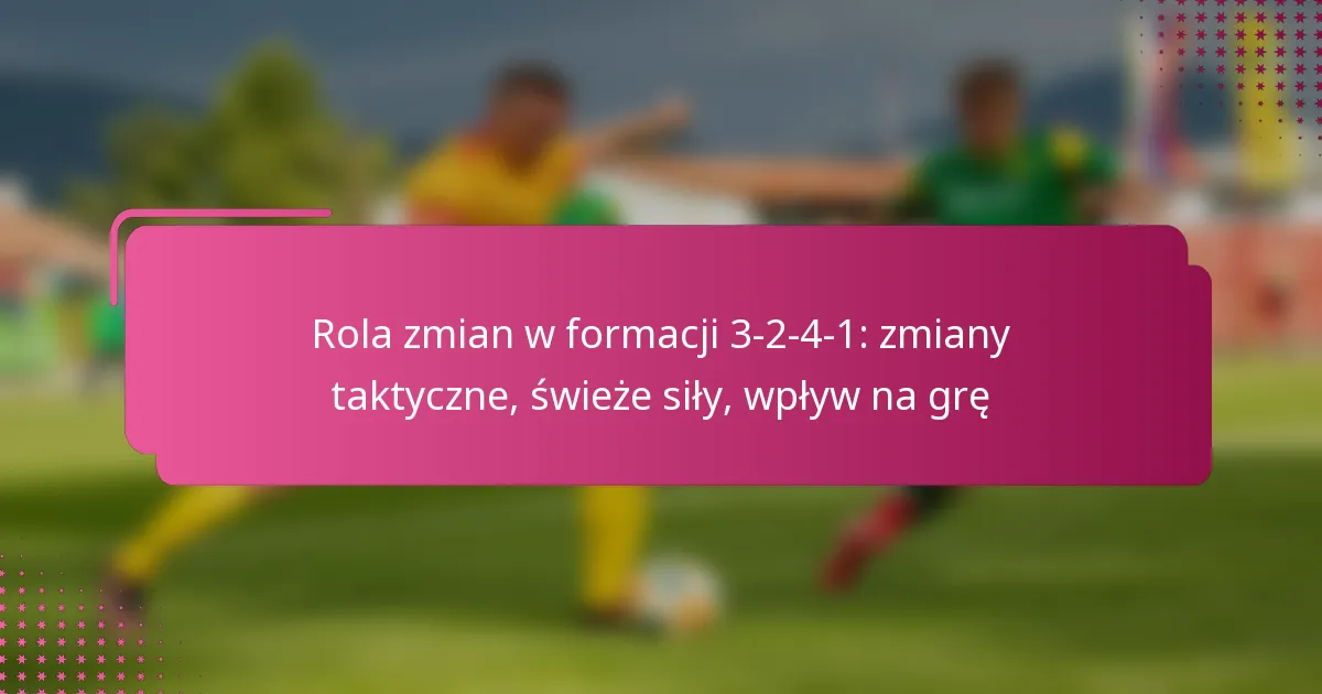 W formacji 3-2-4-1 zmiany powinny być dostosowane do konkretnych pozycji. Na przykład, zastąpienie zmęczonego wahadłowego świeżym zawodnikiem może ożywić skrzydła, umożliwiając bardziej dynamiczną grę i lepsze wsparcie dla napastników.
